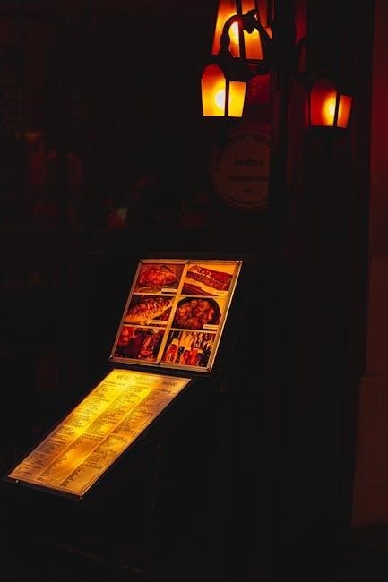 The Pita Street Food Menu PDF is embracing cutting-edge design innovations‚ featuring interactive elements like searchable menus and clickable nutritional information. High-quality images and clear categorizations enhance visual appeal‚ while digital filters allow customers to sort dishes by dietary preferences. The layout prioritizes readability‚ ensuring a seamless browsing experience. Innovations like QR codes linked to reviews or recipe videos add an engaging dimension. These designs not only modernize the menu but also cater to tech-savvy customers‚ making meal selection easier and more enjoyable. The PDF’s adaptability ensures it remains a user-friendly tool for all.
